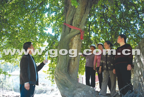 ¡¡¡¡ÐÞÎÄÏØ¾Ã³¤ÕòÉÏÕ¯´åÓпÃ10¶àÃ׸ߵĹÅÊ÷¡£Õâ¿Ã±»µ±µØ´åÃñ³ÆÎª¡°·òÆÞÊ÷¡±µÄ´óÊ÷£¬ÓÉÒ»¿ÃСҶ»ÆÑîÊ÷½ô½ô±§×ÅÒ»¿Ã´óÒ¶»ÆÑîÊ÷ºÏ³ÉÒ»Ê÷£¬ÓÌÈçÒ»¶Ô·òÆÞ½ô½ôÓµ±§¡£¸ÃÊ÷ÒýÀ´²»ÉÙÓοÍǰÀ´¹ÛÉÍ¡£Ä¿Ç°£¬ÉÏÕ¯´åÕýÔÚÎ§ÈÆÕâ¿ÃÊ÷µÄ±£»¤½øÐÐÉú̬ÎÄÃ÷´åÕ¯½¨Éè¹æ»®£¬½«ÒÔÕâ¿ÃÊ÷ΪÖÐÐÄ£¬ÐÞ½¨Ò»¸ö¹©´åÃñÃǻµÄÐÝÏÐÎÄ»¯¹ã³¡¡£Í¼Îª´åÃñÃÇÕýÔÚÉÌÌÖ¹ÅÊ÷±£»¤µÄ¾ßÌå·½°¸¡£