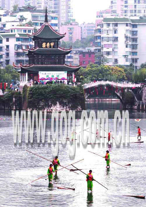 昨日下午,由省农业厅、贵阳市政府主办的“贵州绿茶·秀甲天下”第二届“万人品茗”活动,冒雨在南明区甲秀广场至朝阳桥沿南明河畔以及人民广场(南广场)拉开帷幕。