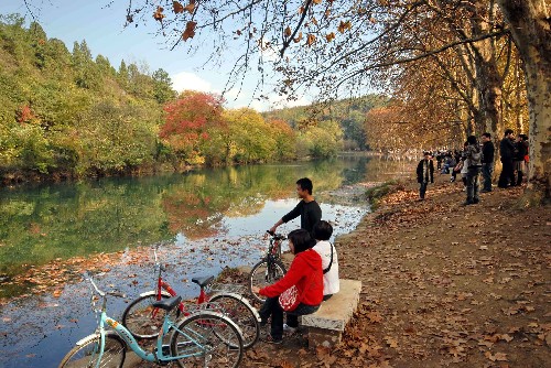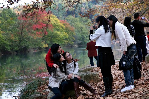 初冬时节,贵阳市花溪河畔层林尽染、美景如画,令到此休闲、观光的中外游客流连忘返。