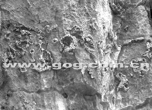 ¡¡¡¡½üÈÕ£¬ÔÚÐÞÎÄÏØ¹È±¤Ïç´óÌÁ´åÁú̶×éÒ»¸ö½ÐʯËñµÄÑÒ±ÚÉÏ£¬±ÊÕß·¢ÏÖÁËÒ»³¤Ô¼°ÙÃס¢¿íÔ¼Æß°Ë´çÍäÍäµãµã£¬ËÆÓ¢ÎÄÓÖ²»È«ÏñÓ¢ÎĵķûºÅ(Èçͼ)£¬Ô¶¿´¾ÍÏñ¹ÅÈËÓÃʯ»Ò°èÅ´Ã×Õ³ÉÏÈ¥µÄ£¬½üϸ¿´ÓÖºÃÏñÊÇ×ÔÈ»Éú³ÉµÄ¡£
