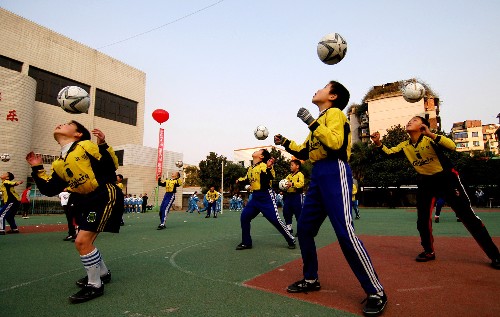 ¡¡¡¡12ÔÂ25ÈÕ£¬ÔÚ¹óÑôÊÐʵÑé¶þÖоÙÐеÄѧУÌåÓý³¡¹Ý¶Ô¹«ÖÚ¿ª·ÅÒÇʽÉÏ£¬Ñ§ÉúÃǽøÐÐ×ãÇò±íÑÝ¡£