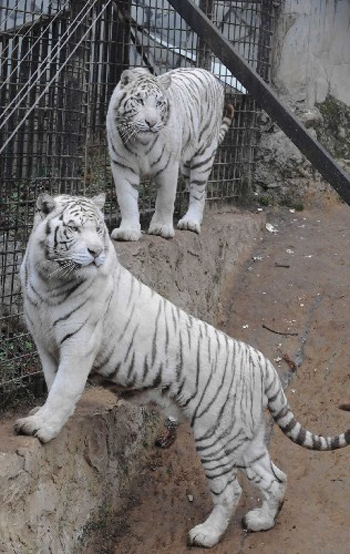 2009年2月17日 贵阳森林野生动物园成功繁育出一只“银虎”,这是“银虎”的父(前)母(后)