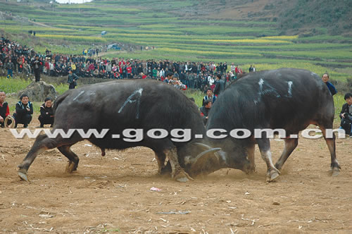 昨日,“高寨斗牛节”在开阳县高寨苗族布依族乡拉开帷幕。当天,来自十里八乡的苗族同胞身着节日盛装聚集在平寨村斗牛场,吹起芦笙、跳着苗族芦笙跳圆舞庆祝节日,并举行了斗牛、斗鸡、妇女拔河、苗族舞蹈等精彩的表演和比赛。