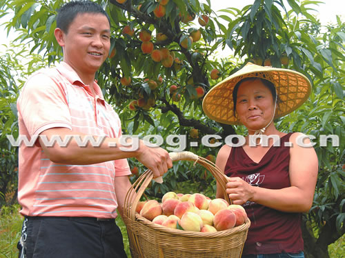 继枇杷、杨梅纷纷上市后,久负盛名的南明区永乐乡的桃子也悄然登场。据悉,该乡万亩桃园今年的产量预计将达500万公斤。自6月初首批早熟桃上市算起,桃子的产出时间将持续到8月中下旬,广大市民可于此时间段内前往桃园摘桃、游玩。图为该乡的一位果农昨日正在收获成熟的桃子。