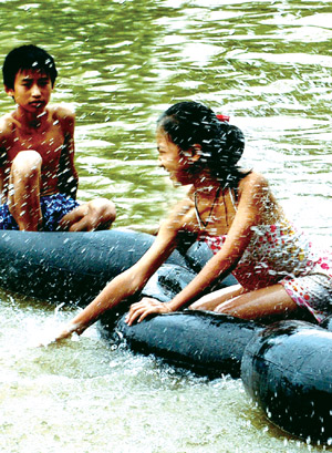 游客在息烽县潮水河上戏水