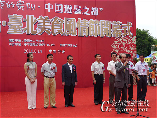 8月14日, 2010中国•贵阳避暑季的重要活动之一、贵阳•台北美食风情节在贵阳市河滨公园隆重开幕。贵阳市委副书记、市长袁周,贵州省旅游局有关领导李光,市委常委、副市长周道许,市人民政府秘书长丁雄军,中华国际经贸促进会总会会长林坤忠,市旅游产业发展委主任、市旅游协会会长葛宇菁,市台湾事务办公室主任李静等出席。成千上万的市民群众和中外旅游者涌入河滨公园,品尝各地特色美食,为祖国传统餐饮文化的丰厚底蕴所倾倒。