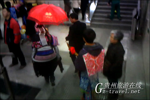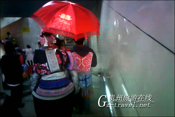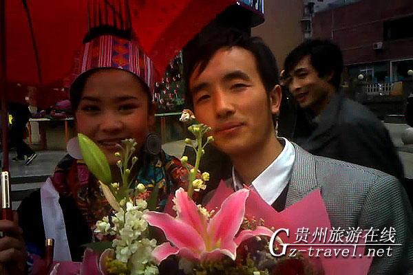 本网讯 2010年12月31日网编在贵阳市喷水池看到一对苗族新人在亲朋好友的陪同下游走在闹市中,他们身着苗寨盛装,以步行的方式迎娶新娘。这种既民族又低碳又热闹的方式,赚足了人们的眼球。(图片为视频截图,视频地址http://www.gz-travel.net/gzdc/201012/10769.html)