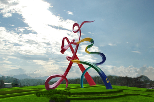 ¡¡¡¡¸ÃµñËÜ×ܸß30Ã×£¬Óɲ»Ðâ¸Ö×ö³É£¬ÖØÔ¼100¶Ö£¬½«°²·ÅÔÚ»ú³¡Â·±ßÉÏ¡£µñËÜÉè¼ÆÊÇÓÉ¡°Ë¬¡±×Ö±äÐΣ¬ÖмäÍ»³öÒ»¸öÔÚÔ˶¯µÄ¡°ÈË¡±£¬Õû¸öµñËܸøÈËÒÔÆ®ÒÝ¡¢ÇåˬµÄ¸Ð¾õ¡£