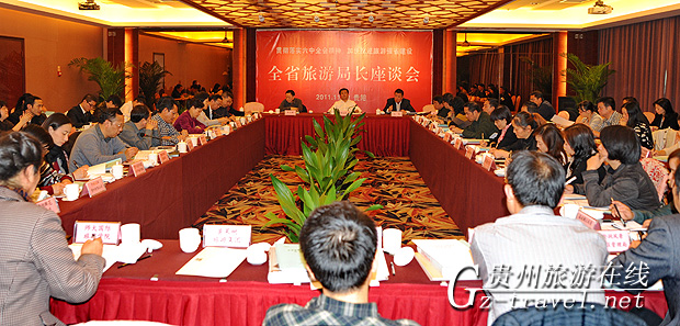 本网讯(欧阳昌佩 报道) 11月29日,为期一天的全省旅游局长座谈会在贵阳栢顿酒店召开,会议通报了今年1-10月全省旅游经济运行情况,部署了2012年旅游产业发展工作。参加会议的有各市(州、地)旅游局长、旅游企业、部分旅游景区和旅游院校(系)主要负责人、旅游局机关各处室负责人共80余人。局党组书记、局长傅迎春出席会议并讲话。