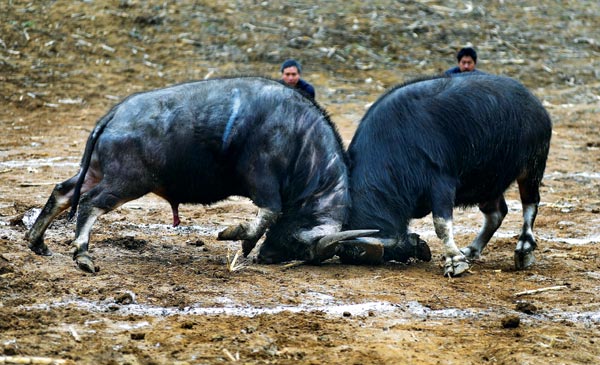 据悉 月16日,两万多名苗族同胞聚集在开阳县高寨苗族布依族乡平寨村,参加一年一度的苗家“斗牛节”。 “斗牛节”是开阳县高寨乡每年最大的民族节日之一,是苗族村寨与村寨之间的大型联谊活动。