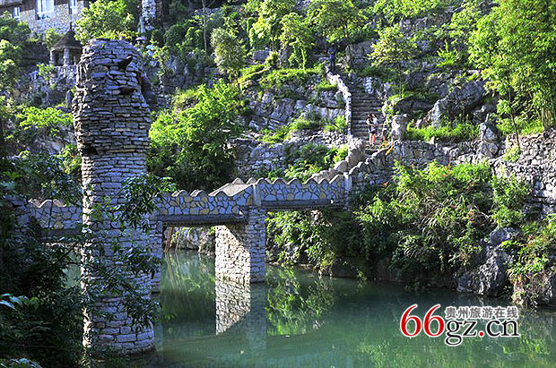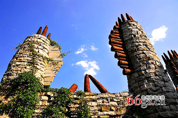 在距离花溪大约六公里的地方有个渡假中心-----夜郎谷,其间松林环绕,清澈的小河流淌山涧,勾画出一幅山水图。整个庄园建筑全部以石头为材料,以传说中夜郎国的各种祭祀神灵为主题,给人一种神秘原生态的感觉。
