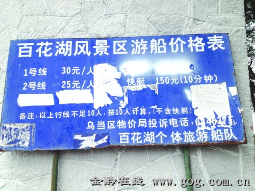 据姜传勇介绍,百花湖景区是该公司2008年接手管理的,现行的门票规定是每人5元、每车5元。游船价格则由船主与游客自行议价。据公司调查,由于百花湖周边居民大多有游船、自用船,但很多自用船都被转为游船,一部分在景区正规码头停泊经营,还有一部分则在景区外围“打游击”。