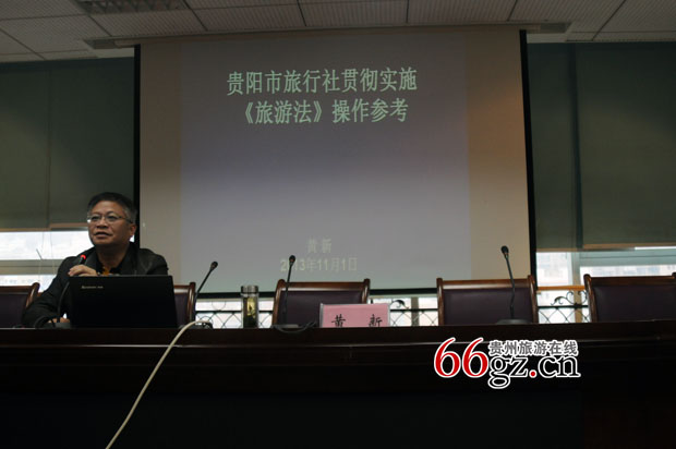 贵州旅游在线讯 今日上午,由云岩区旅游局举办的《中华人民共和国旅游法》培训会于云岩区行政中心六楼会议室举行,会议邀请了贵阳市旅游产业发展委员会质规处处长黄新为各个旅行社详细讲解《旅游法》。