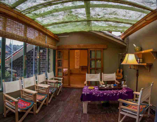 青舍小院的男主人小刚是一位独立民谣歌手,自从在青岩居住后,圈中的朋友也爱上了这里,家中的小院已经无法容纳越来越多的客人,便有了现在的青舍。青舍小院之所以如此吸引人,是因为这里白天可以发呆,晚上可以发疯。夜幕下的青舍,有一种文艺青年的调子。