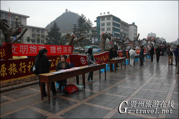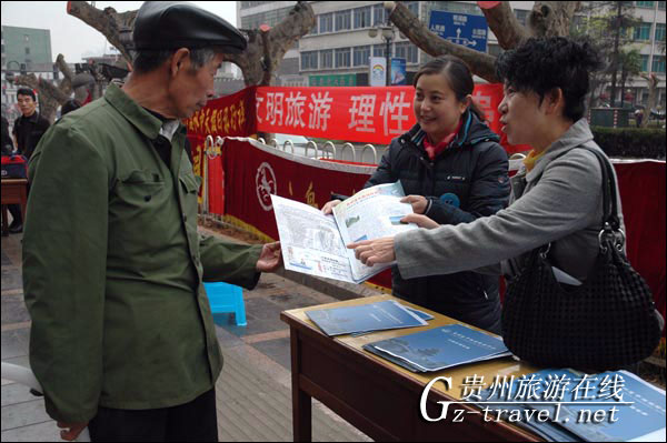 本站讯 根据《贵州省“2010旅游服务质量提升年”工作意见》的要求,进一步推进六盘水市旅游企业诚信建设,提升旅游企业服务质量,倡导文明旅游,理性消费和依法维权,提高旅游消费者的素质。3月15日,六盘水市外事侨务旅游局组织市中心城区景点、旅行社20多家上街进行宣传。这次活动共计发放宣传资料2万多册,现场受理和解答旅游消费者的咨询等。