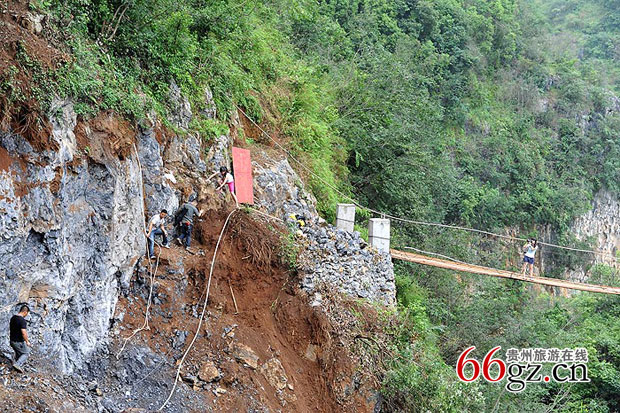 ¡¡ ¡¡ÔÚÕâÀï²»½öÓÐÐÛ׳µÄ±±Å̽´óÇÅ£¬»¹ÓÐÁíÍâÒ»¸öÎüÒýÖÚÈËÑÛÇòµÄ¡°Ë÷ÇÅ¡±£¬ÕâÊÇÀ´µ½Ã©²Ýƺ²»µÃ²»È¥µÄµØ·½¡£ËùνµÄË÷ÇžÍÊÇÒ»¸ù¸ÖË¿Éþ£¬½«ÉþË÷Á½Í··Ö±ð¹Ì¶¨ÔÚÁ½×ùɽ֮¼ä£¬Óü¸¸ù¸Ö½î×öÁËÒ»¸öËÄ·½µÄ¿ò¼Ü£¬´îÉϼ¸¿éľ°å£¬ÀûÓû¬ÂÖ¶¨Âɹ¹³ÉµÄÒ»¸ö¼òÒ׵Ľ»Í¨¹¤¾ß¡£ÏëÒª´Ó´ËÇÅÉÏ˳Àûͨ¹ý£¬ÐèҪɽµÄÁ½¶Ë¶¼µÃÓÐÈ˱˴ËÖúÁ¦À¶¯»¬ÂÖ²ÅÐС£É½Óëɽ֮¼ä¶¼ÊǶ¸Ç͵ÄÏ¿¹È£¬ÆäÉî¶È¿É´ï°ÙÀ´Ãס£