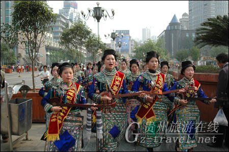 黎平县长闵启华身着民族服装率队在贵阳街头为市民展示侗乡风采
