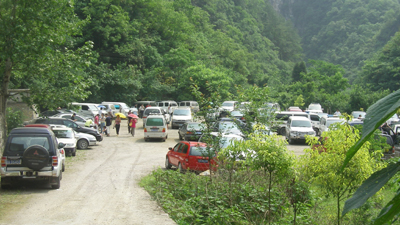 舞阳河景区门口停满了车辆