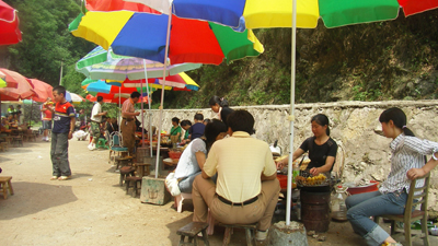 “五一”黄金周,历史文化名城镇远古街区的苗疆古城风味馆,前来就餐的游客络绎不绝。5月6日下午6点多钟,餐馆业主赵成德正忙里忙外,吆喝着安排客人就餐,高兴地对前去就餐的县旅游局工作人员说:“这几天生意真是太好了,每天大约三、四千人,最多的一天达五千多人,给我带来了很大的收入!”