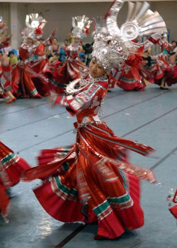 8月30日,贵州省从江县小黄村侗歌演唱队在加紧排练侗族大歌《蝉之歌》。由国家民委等部门举办的第三届全国少数民族文艺会演将从9月5日至25日在北京演出。来自全国近30个省、市、自治区和港澳台的1300多名少数民族演员参加演出。