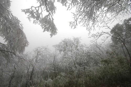 12月10日在贵州雷公山国家森林公园拍摄的雾凇景观