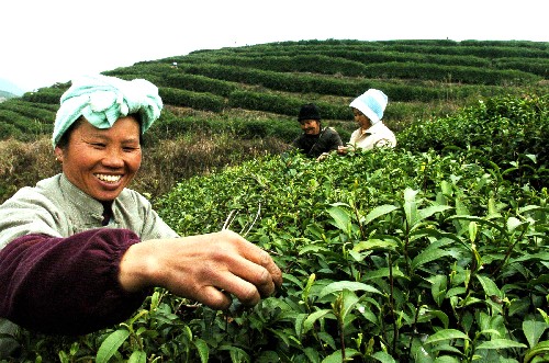 3月11日,贵州黎平县永从乡稻侗村茶农在采摘第一批春茶。
