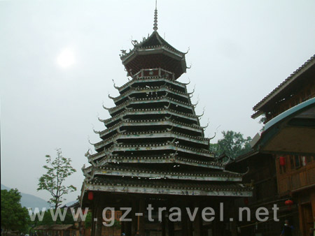 4月25日上午九点,在肇兴信团鼓楼下一群寨老正在议事;鼓楼是侗乡具有独特风格的建筑物,鼓楼始建于何时?由于侗族无文字记载,无从考究。不过,侗乡世代相传:从有侗族村寨的时候起,就有鼓楼了。在侗族历史上,凡有重大事宜商议,起款定约,抵御外来官兵骚扰,均击鼓以号召群众。由寨中“头人”登楼击鼓,咚咚鼓声响彻村寨山谷,就能迅速把人集中起来。无事是不能随便登楼击鼓的。鼓楼是侗寨老年人教歌、青年人唱歌,幼年人学歌,民间老艺人传歌编侗戏的集中场所。侗乡被称为“歌的海洋”,是名符其实的。