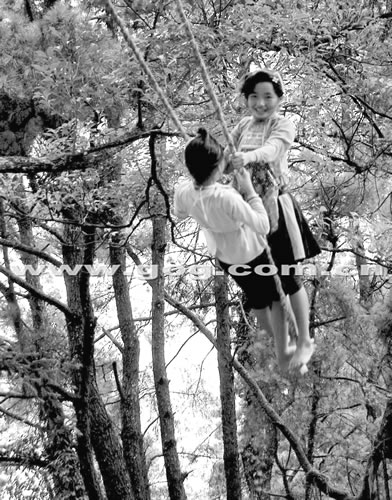 荡秋千是寨里年轻人谈情说爱的主要活动之一,用稻草绳来荡秋千从小就开始喜爱,至青年时代技艺提高了很多。