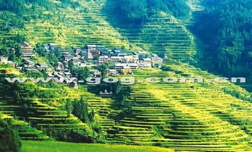 金秋时节,黔东南州黎平县境内稻谷熟了,山野田间一片金黄。在层层梯田的映衬下,侗寨景色美如画。图为9月9日记者拍摄的黎平肇兴堂安侗寨梯田风光。