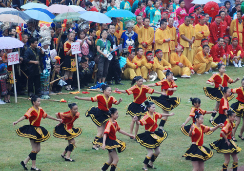 9ÔÂ25ÈÕ£¬ÉÙÊýÃñ×åȺÖÚÔÚ«óϽڿªÄ»Ê½ÉϱíÑÝÔÉú̬¸èÎè¡£