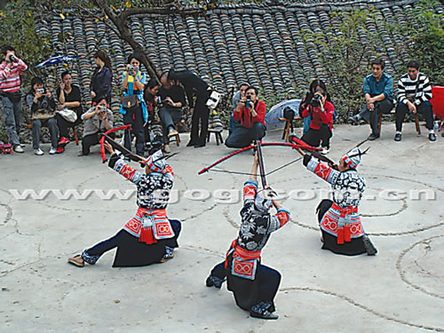 黄平县重兴乡望坝村是亻革家聚居村,民俗风情十分浓郁。近年以来,该村不断挖掘乡村民间文化优势资源,先后投资20余万元打造了一批以唱酒歌、迎客舞、板凳舞、踩亲舞等原生态歌舞,吸引了省内外游客慕名来访。融旅游观光和休闲度假为一体的望坝农家乐乡村旅游,促进了当地农民增产增收。目前,望坝村共接待游客万余人次,仅乡村旅游一项每年收入可达50余万元。