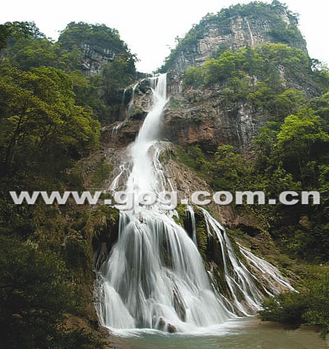 该瀑布自然造型特别美观,只见瀑布在两座山峰中间垂直落下,气势壮观,远观如同洁白的玉带,近看像美丽的婚纱。目前,镇远县正在制定该瀑布的保护与开发方案。