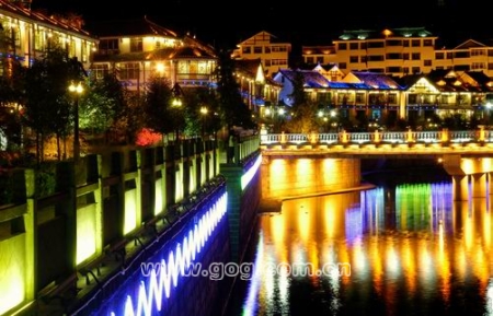 雷山县近期投资182.25万元在丹江河畔,绿化带,民族特色一条街等处安装了泛光灯、庭院灯等景观灯,成为县城夜色中的一道亮丽风景。