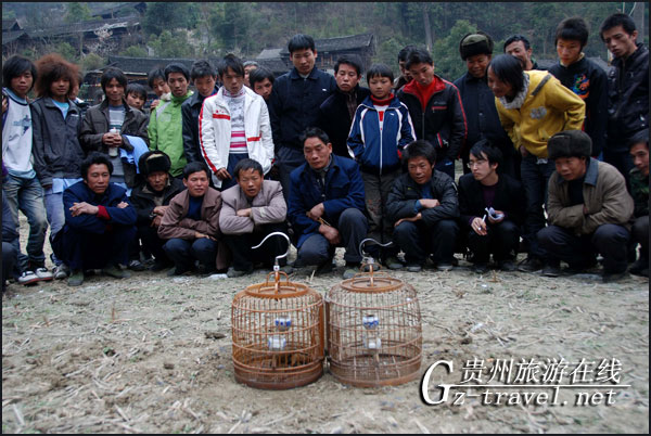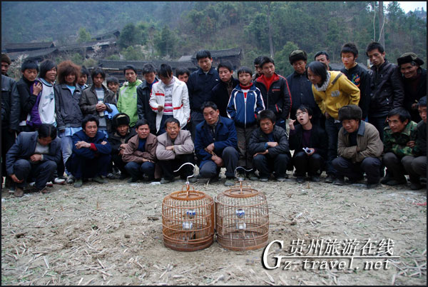 2月20日,在贵州省丹寨县长青乡龙塘村举行的迎春运动会上,当地养鸟爱好者开展画眉鸟争斗大赛,携来的数十只画眉鸟轮番上场,捉对争斗,观者兴致勃勃。斗鸟比赛是当地少数民族同胞春节期间的一项传统民俗活动,深受群众的喜爱。