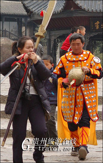 男一女的造型瞬间吸引了我的注意,他们应该是镇远当地人,专门给游客提供特色衣服进行拍照留念的!价格不贵,10块钱就能拍一套。
