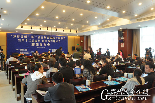 本站讯 4月19日,"多彩贵州”第二届贵州民族体育旅游节暨第十二届“贵州苗族姊妹节”新闻发布会在贵阳举行。