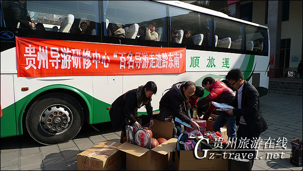 12月26日,贵州导游研修中心、黔艺宝创新导游培训机制,开展为期两天的“百名导游走进黔东南”活动。导游员们带着向民族村寨小学捐赠的10多箱书籍、文具、篮球等,驱车前往雷山县献爱心和进行实地考察及强化培训。在往返途中旅游车上,邀请资深旅游专家讲授贵州及黔东南旅游知识、风土人情、导游规范等,并与导游员互动交流;组织导游员到民族村寨参观考察、体验生活、与村民联欢沟通,以增长知识、提高导游水平。