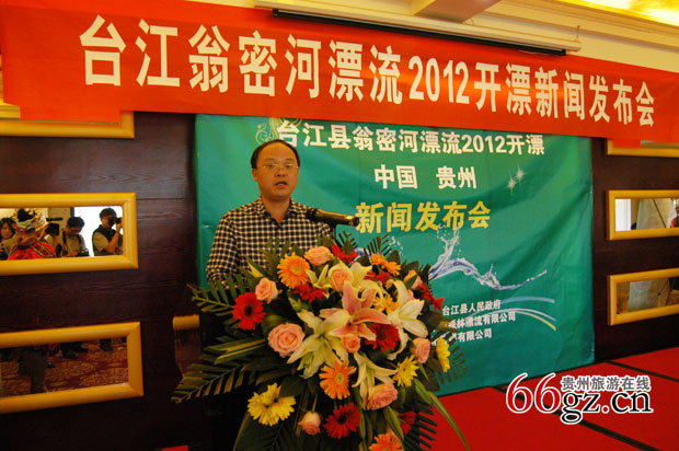 贵州旅游在线讯 2012年5月14日,台江县翁密河开漂新闻发布会在筑召开。贵州省旅游局市场开发处处长张鹏华、台江县副县长潘金海、台江县翁密河原始森林漂流有限公司经理吴秋成、贵州省内多家媒体及旅行社参加此次发布会。