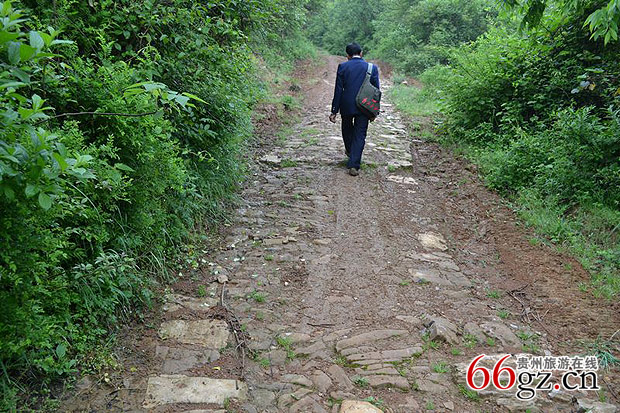 贵州旅游在线讯 继2009年施秉的长田坎村发现明代古驿道后,最近,施秉又在甘溪、新桥发现古驿道。此段驿道东起施秉城关新红村干地坪,西至甘溪村的老院组,古驿道断断续续延绵16余公里。路面由鹅卵石铺垫而成。遇有小沟有古石桥相连,遇坡坎有石级相接。古驿道除甘溪高塘坡段因兴修飞机场占领并受到坡外以外,古道保持还相当完好。而保持最完好的当数水浸坡至常家院段,这段除石头铺设的道路保护还相当完,道路的排水系统还发挥作用。据常家院村民吴友海介绍说,在解放初的前后期,这里还是通往黄平旧州的交通要道,那时他们还见到马帮队在运送如布匹、食盐等等。常家院组和高塘坡组有大量的耕地在古驿道旁,这里的村民还利用这条古驿道进行生产劳动。