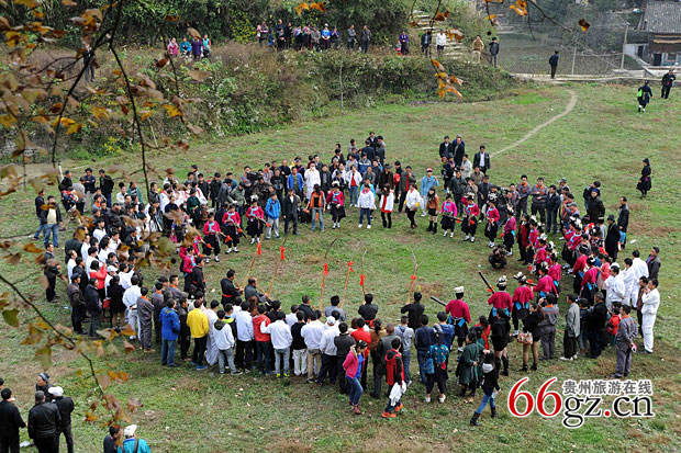 贵州旅游在线讯 2013年11月19日是贵州省丹寨县扬武镇杨颂村一年一度的苗族祭尤节,当日,苗族村民们身着盛装欢聚一堂,举行隆重的祭祀仪式,祭祀苗族先祖。并以跳芦笙舞、唱苗歌的方式欢度这一古老的苗族节日。