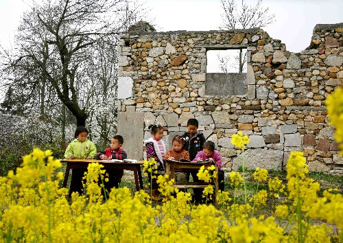 2ÔÂ24ÈÕ£¬¹ó¶¨ÏØÅ̽ÕòÒôÕ¯´åµÄº¢×ÓÔÚÓͲ˻¨ÌïÅԱ߻»¡¢×ö×÷Òµ¡£