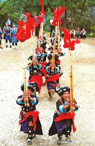长衫龙苗族芦笙舞流传在距贵定县城10公里的新埔乡四寨村,这里聚居苗族一支系——花苗。花苗自古崇拜龙,龙能呼风唤雨,吞噬日月,能使人间风调雨顺、五谷丰登,是他们崇拜的神。