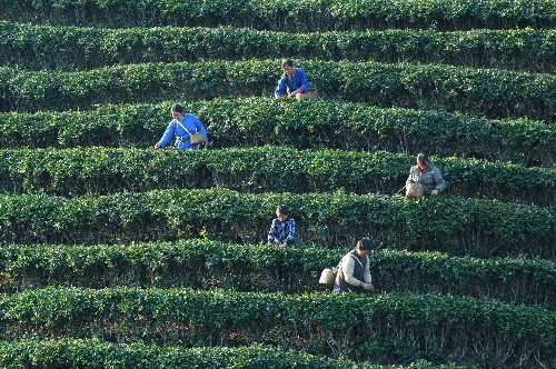 贵州云雾明前茶开采 3月23日,村民在贵州贵定县云雾镇鸟王村采茶。