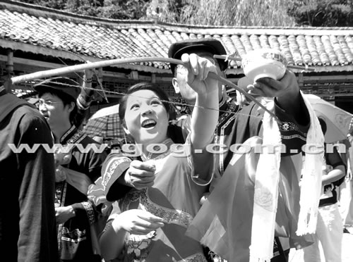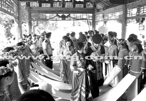 毛南族是我国人口较少的山地民族之一,以悠久的历史和独特的文化闻名于世。贵州毛南族主要居住在平塘县卡蒲毛南族乡。前不久首届黔南州旅游产业发展大会暨中国、平塘世界地质奇观旅游节期间,平塘县卡蒲毛南乡举办了毛南族婚典。来自北京、上海、成都、昆明、深圳等全国各地10对新人,在卡蒲毛南乡风情园内,以当地特有的方式举行了集体婚礼,喜结良缘,亲身体验了原汁原味的卡蒲毛南族婚俗。婚礼在挖掘毛南族婚俗特色的同时,又融入了新的时尚元素。观手识新娘、抢亲、接外婆、对歌、过火盆、过七彩桥、结发夫妻等精彩纷呈的婚典,给新人留下了深刻的印象。来自北京朝阳区的金贵激动地对记者说:这里的人民热情好客,民俗民风独具特色,自然山水风光迷人,在这样的环境和氛围举行婚礼,是自己一身中最难忘、最美好的永恒回忆。