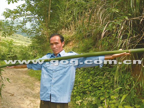 12月12日,记者从贵州茂兰国家级自然保护区管理局获悉,该局工作人员在保护区内翁昂乡发现一种野生竹子,竹节有1米多长,当地村民把这种竹叫“长节竹”(如图),据悉,这是全国罕见的长节竹。