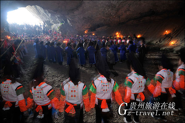 本站讯 2010年2月18日,正月初五,龙里县摆省乡果里村迎来一年一度的“跳洞”活动。