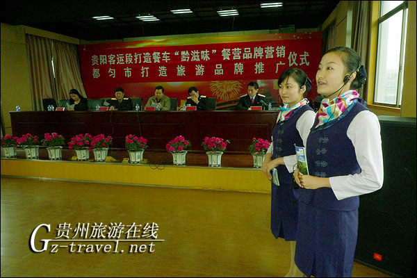 由都匀市政府、都匀市旅游局、成都铁路局贵阳客运段,联合制作的“黔滋味”餐车消费旅游指南,11月12日在贵阳铁路客运段举行首发仪式,出席首发仪式的有贵阳铁路分局党组书记客运段段长、各趟列车列车长及客运服务人员200余人,新闻媒体成都铁路电视台、黔南电视台、贵阳晚报、贵州商报、贵州都市报等多家新闻单位,都匀市主管旅游副市长、旅游局副局长、旅游局全体工作人员参加了首发仪式,同时跟上了贵阳开往上海的k122/111次列车举行首发式,都匀导游苗家女卢政英,列车服务员向旅客发放宣传资料,同时列车播音员向游客播放都匀旅游信息指南。据悉,都匀旅游指南走向贵州每趟客运列车,是贵州铁道部门对都匀旅游的大力支持,同时将对都匀旅游起到至关重要的拉动效果。