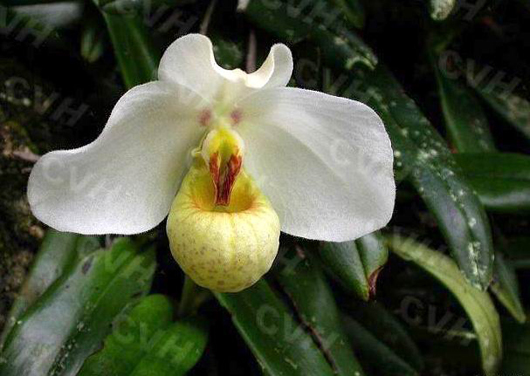 这种稀有的白花兜兰,一般长在周围林木茂密、隐蔽性强的石壁之上,它是单子叶植物中虫媒传粉的最高级类型,在适应形形色色的昆虫传粉过程中,兰科植物的花朵形态发生了奇异的变化。