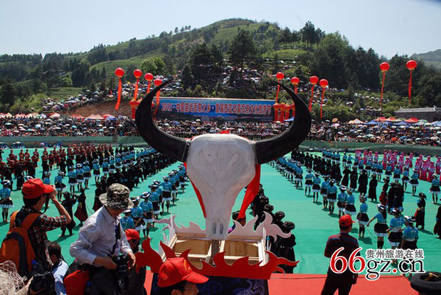 据悉,开幕式分为茶祭,茶艺,贡茶,茶庆四个部分。茶祭为贵定当地的茶乡祭祖典礼,“茶祖神农,功启洪荒,教化耒耜,国兴农桑・・・・・・・”230字的祭文,古韵悠长,庄重肃穆,祭典过后,是苗族、布依族歌舞表演,在场的数千名游客在茶场环绕的空地上,一面欣赏民族风情浓郁歌舞表演,一面品尝云雾贡茶,茶香宜人,歌舞升平,其乐融融。一位来自广西的游客告诉记者,贵定将民族文化与贡茶文化融为一体,茶香人美,“贵州最美茶乡”称号,名不虚传。