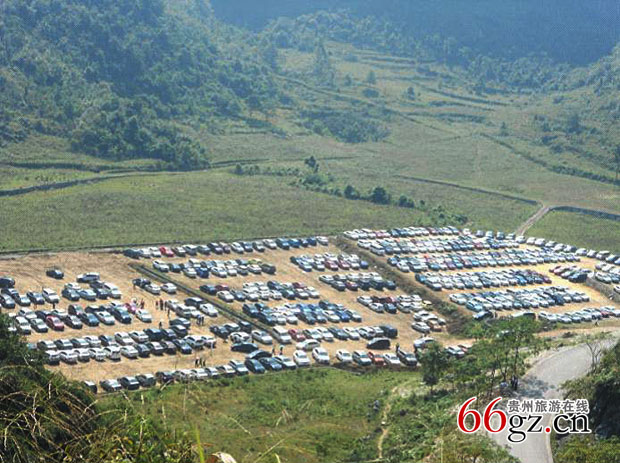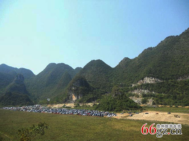 贵州旅游在线讯 10月2日,贵州省黔南州荔波县旅游开始进入高峰期,麻驾高速公路离景区大门约300米处名叫“三道弯”的地方,约有200亩长满杂草的空地,现有一半已摆满了来自全国各地的旅游车辆,三台推土机还在旁边继续平整土地,加紧扩建景区临时停车场。